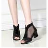 Большие размеры, летние новые туфли на толстом каблуке с рисунком «рыбий рот», женская обувь, сетчатая пряжа, дышащие, сверкающие бриллианты, классные ботинки, босоножки на высоком каблуке, сетчатые ботинки, обувь для мам