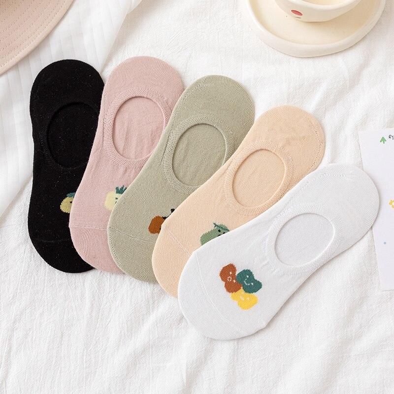 5 пар женских силиконовых нескользящих невидимых носков, женские летние носки-лодочки с растительным узором, женские мягкие дышащие носки