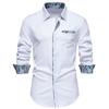Весна-лето Британский ретро Slim Fit Color Blocks Повседневная мужская рубашка с длинным рукавом Рубашки (Мужской)