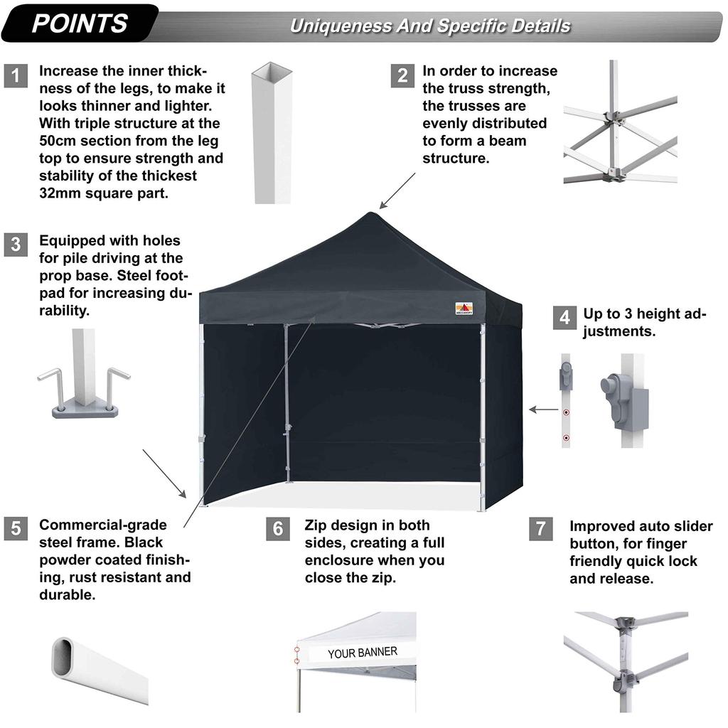 ABCCANOPY тентовая палатка с крышей, 4 боковыми шторами, 1 боковой дверью, соединенными большим 3 регулируемым роликом, высокопрочным шестом с одним касанием, (3