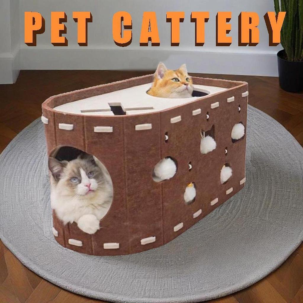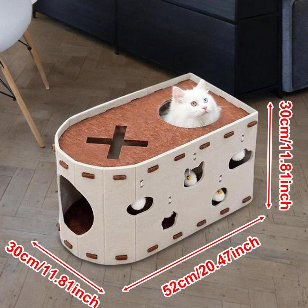 - 【Комфорт круглый год】: Кошачий домик из фетра — идеальный выбор для любого времени года, он обеспечивает теплое убежище зимой и прохладное убежище летом.. Плотный войлочный материал помогает снизить уровень шума, обеспечивая кошке территориальные права и спокойное место.