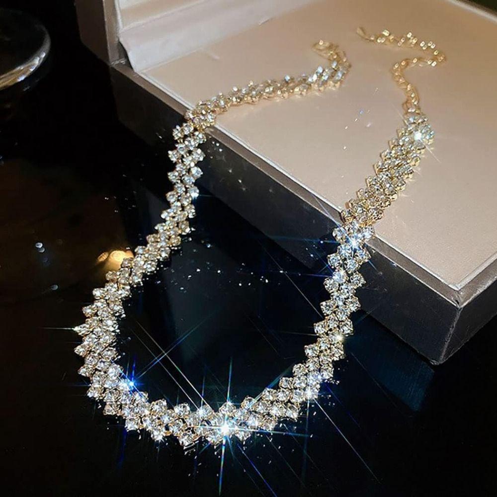 Полный горный хрусталь блестящее ожерелье Роскошная хрустальная цепочка Ювелирный блестящий воротник для выпускного вечера для новобрачных — купить товар онлайн с бесплатной доставкой до всему миру!