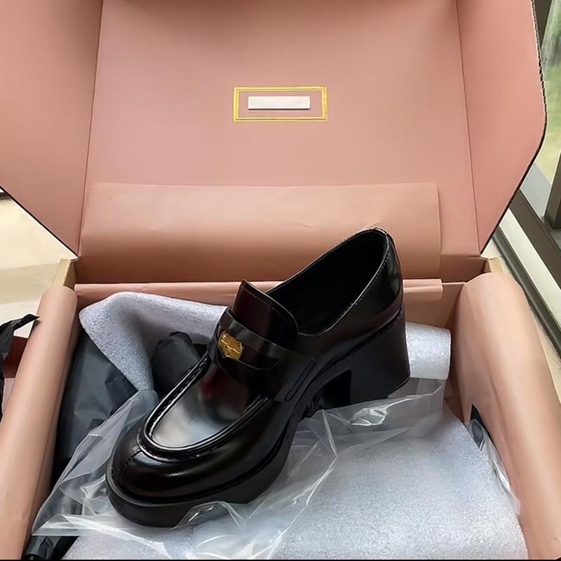 Версия из овчины ~ 2025 новые кожаные маленькие мужские мокасины miu wind gold coin с неглубоким носком женские толстые каблуки с увеличенным каблуком маленькие кожаные туфли