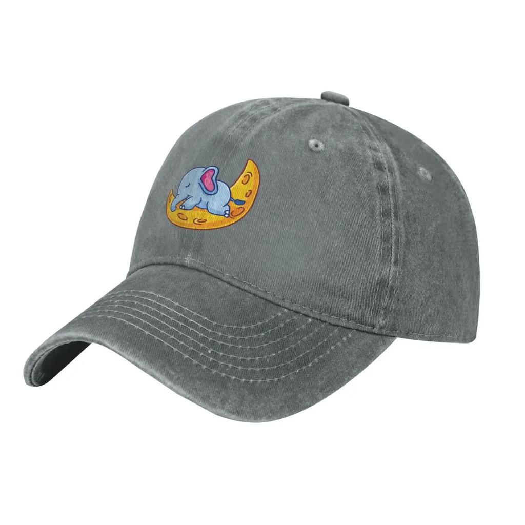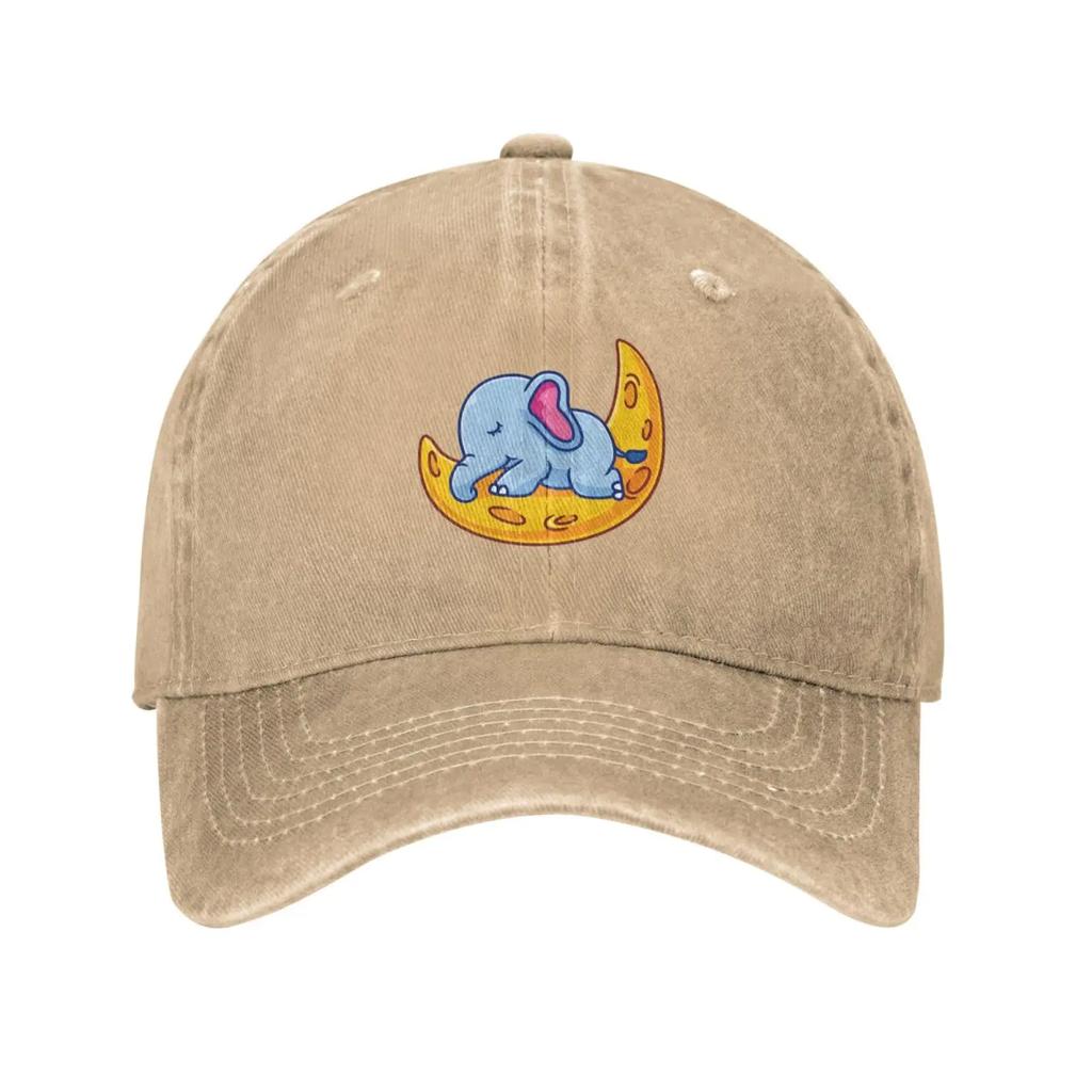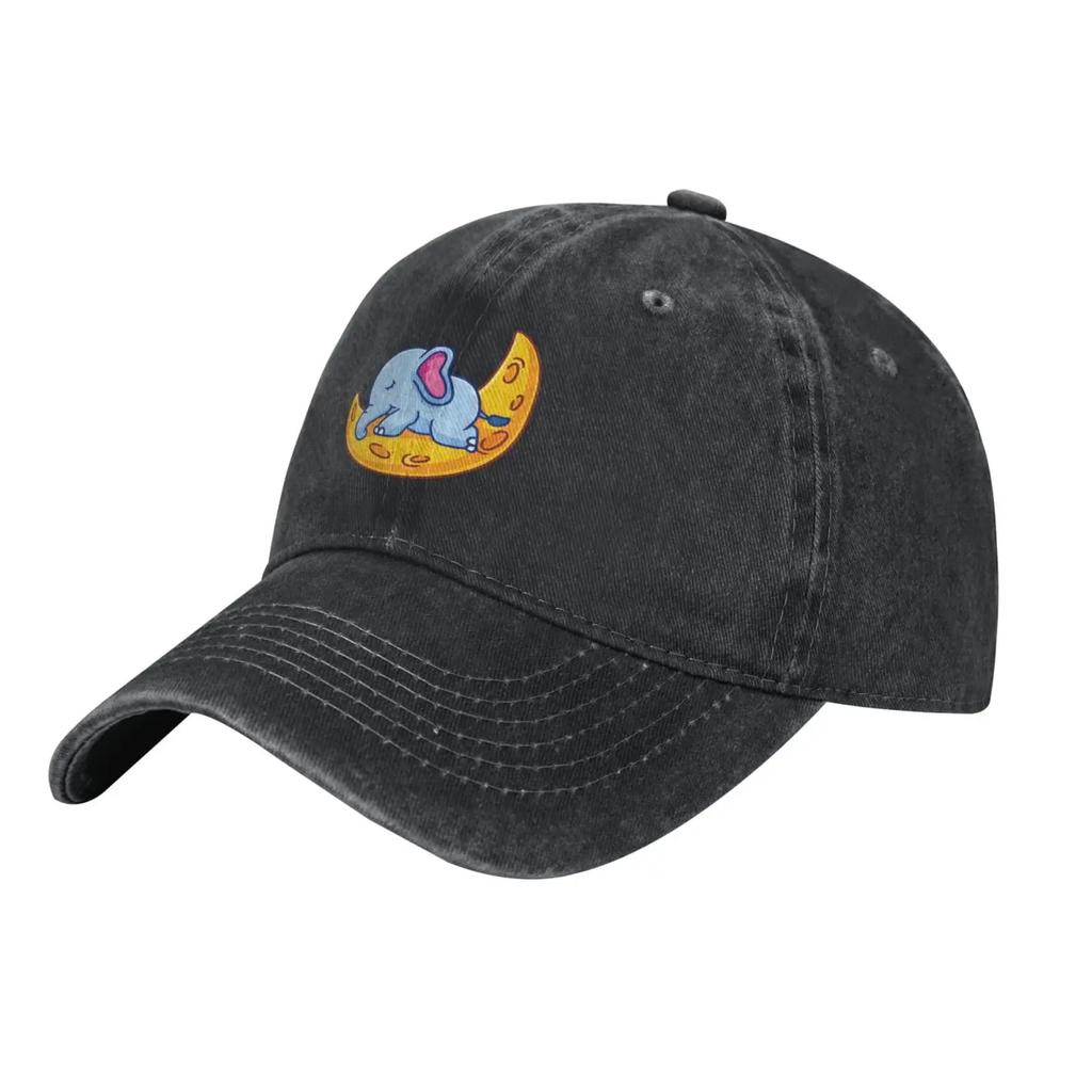 Слон спит на Луне Бейсболка Женская Мужская Шляпа Винтажные Ковбойские Шляпы Тракер Солнцезащитные Кепки