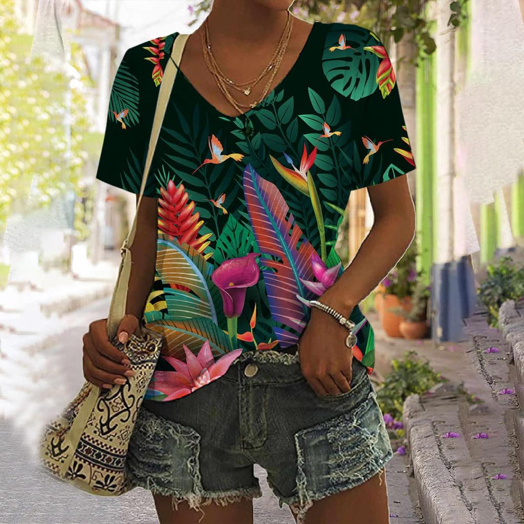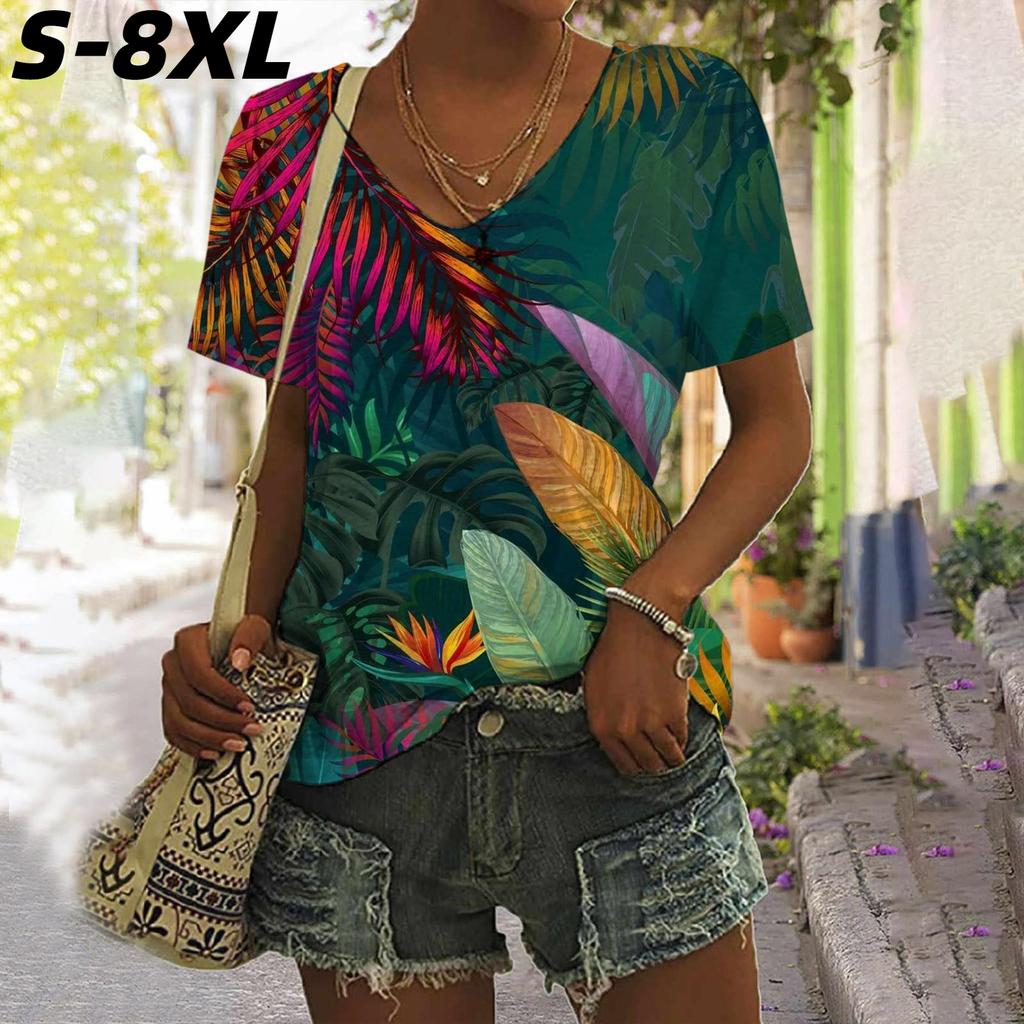 S-8XL футболка большого размера с цветочным 3D-принтом женская футболка с V-образным вырезом и коротким рукавом свободного покроя Harajuku Y2k топы футболки женская одежда