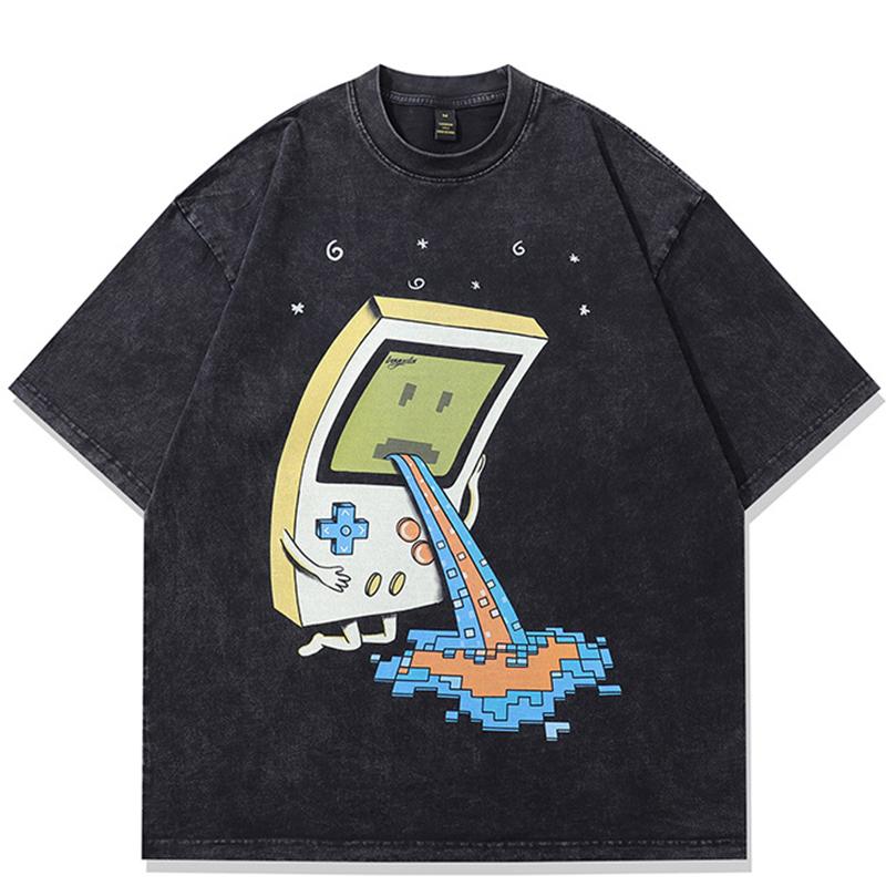 Уличная футболка с забавным рисунком, хлопковая промытая черная футболка, топы унисекс, футболки, летняя футболка с короткими рукавами