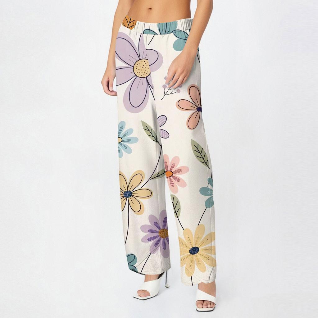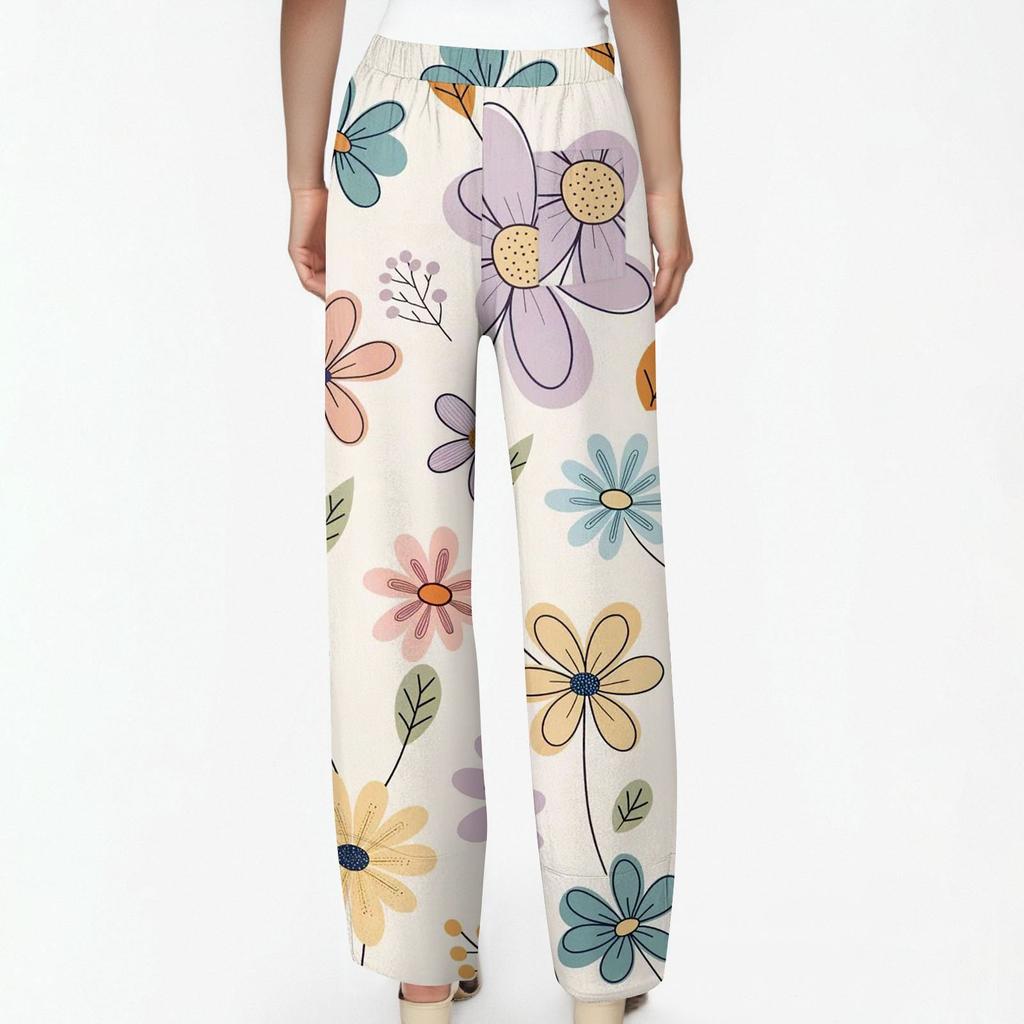 Брюки женские летние повседневные широкие брюки с эластичной резинкой на талии и карманами