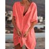 Плюс Размер Модная летняя женская повседневная пляжная одежда Купальники накидка льняное платье свободное с коротким рукавом глубокий V-образный вырез однотонное мини-платье для вечеринки