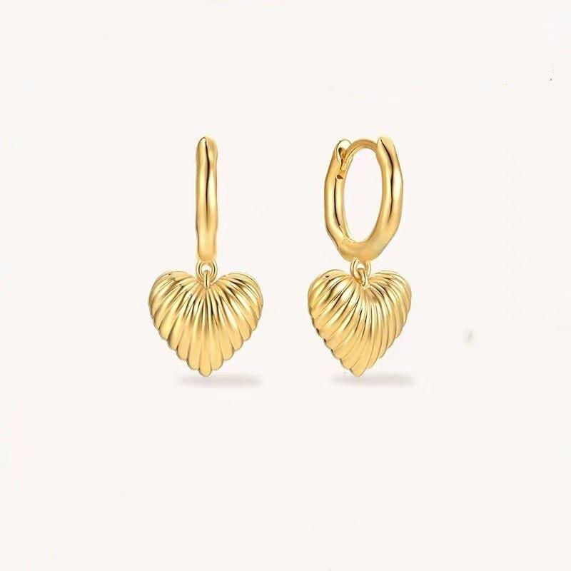 Легкие роскошные серьги-пряжки в форме сердца из золота с узором из ракушек для женщин