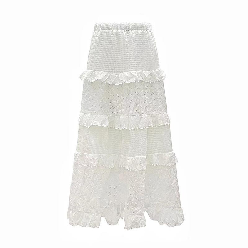 Длинная юбка А-силуэта с высокой талией, белая юбка, летняя кружевная универсальная нежная юбка-зонтик
