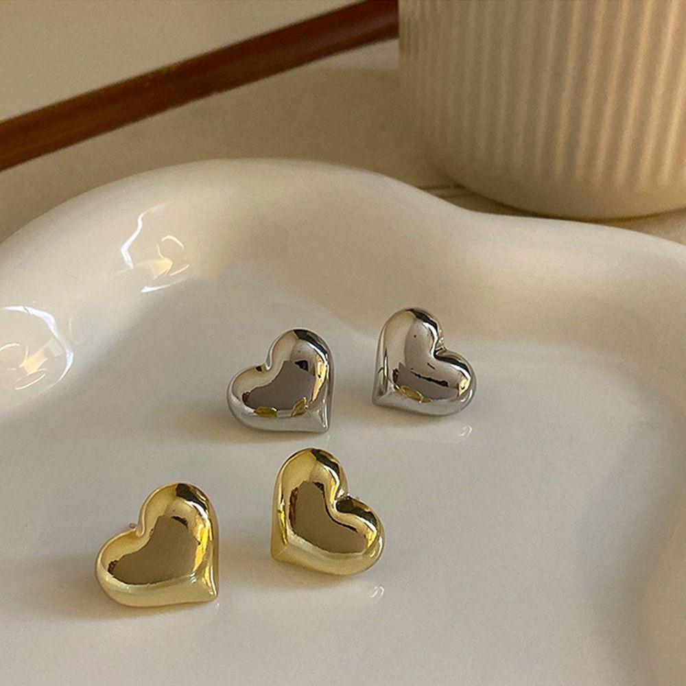 Solid Color Love Heart Earrings Jewelry Accessories Piercing Ear Stud Metal Stud Earring Women