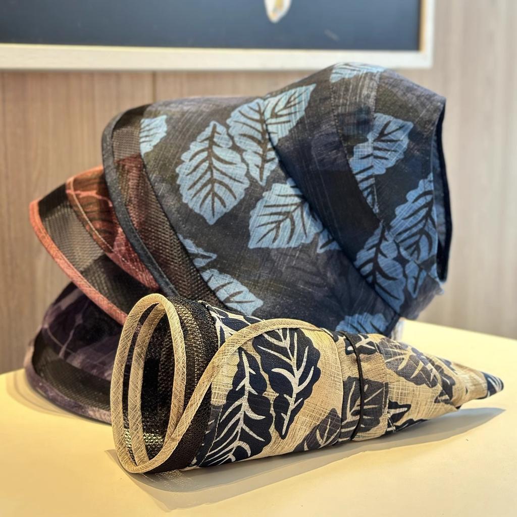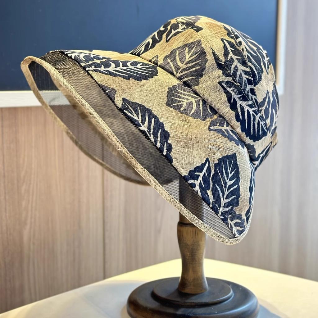 Весенне-летняя шляпа-цилиндр с открытым верхом и детским принтом листьев, с широкими полями для защиты от солнца и для путешествий на открытом воздухе, пляжная шляпа