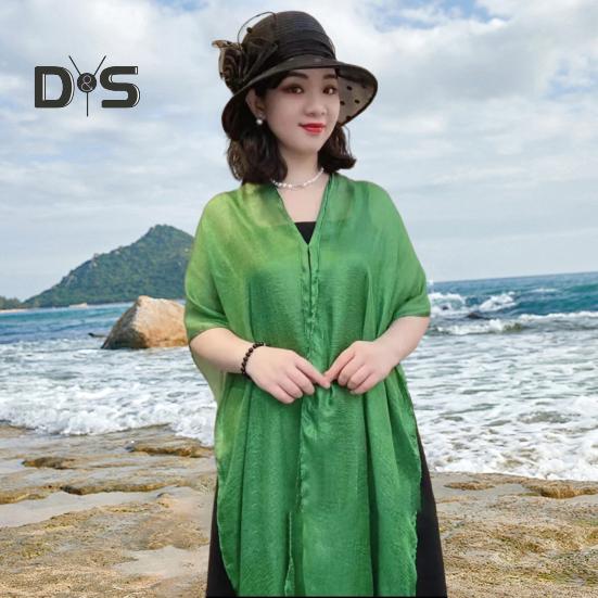 Летняя шаль с V-образным вырезом, планкой на пуговицах, легкая защита от солнца, универсальная пляжная шаль, однотонная шаль для отпуска с солнцезащитным кремом