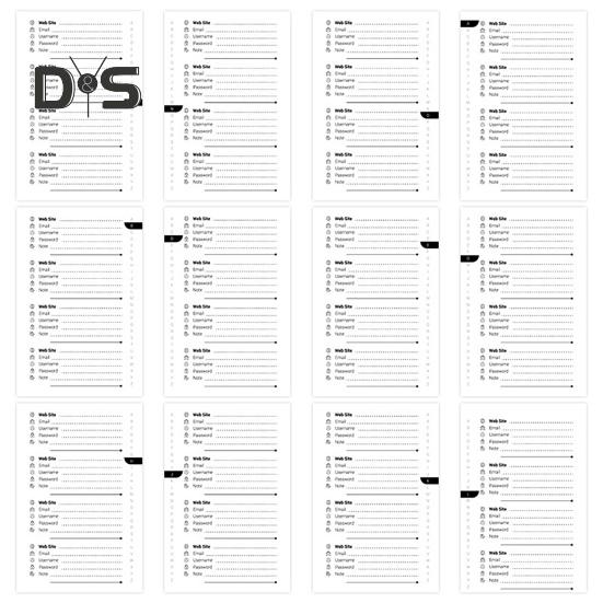 Благодаря специальным разделам для интернет-провайдеров, настроек беспроводного маршрутизатора, лицензий на программное обеспечение, конфигураций электронной почты, часто посещаемых веб-сайтов и дополнительных заметок наши журналы паролей предоставляют достаточно места для эффективной организации вашей информации.