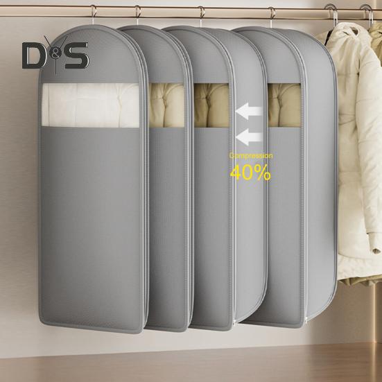 Кольцо для вешалки надежно фиксирует одежду, а молния мгновенно блокирует попадание пыли, обеспечивая герметичную защиту за считанные секунды.. Идеально подходит для компактных шкафов или организации багажа.