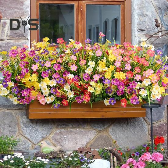 2 шт. комплект искусственных цветов, устойчивые к ультрафиолетовому излучению, искусственные растения, не выцветающие искусственные цветы для дома, вазы, корзины, оконного ящика, наружного украшения
