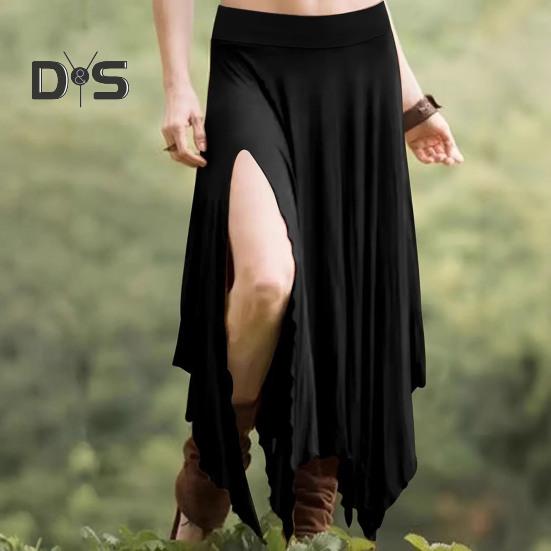 Элегантный дизайн с высокой талией: Подчеркните свой стиль с помощью этой длинной юбки с высокой талией, эластичным поясом и неровным подолом, которая без труда подчеркнет вашу модную элегантность.