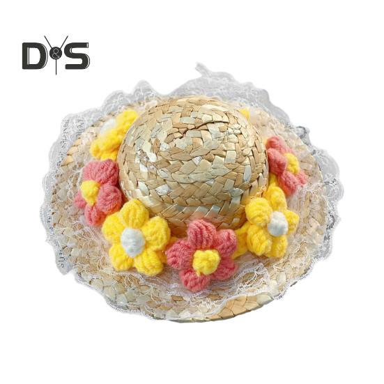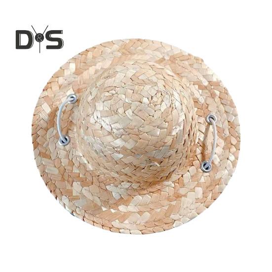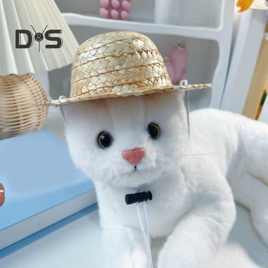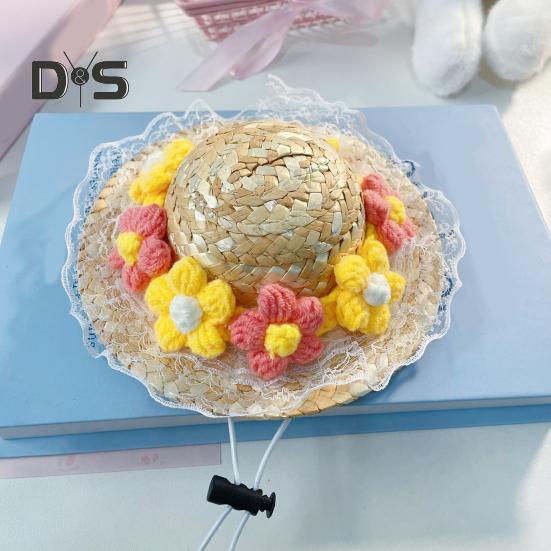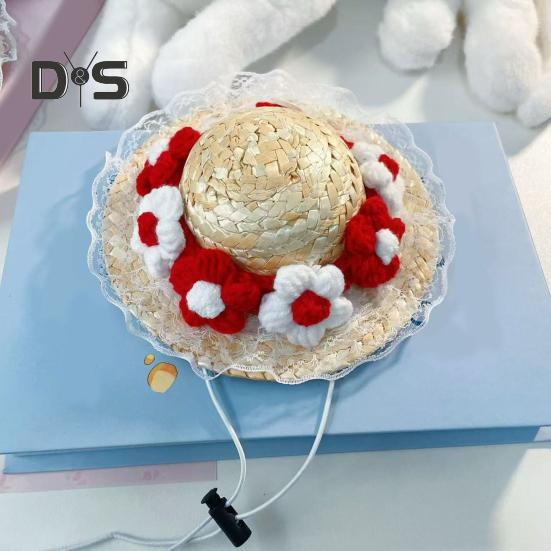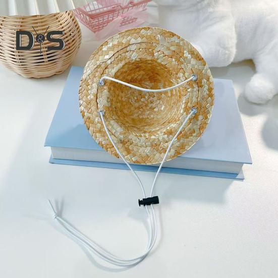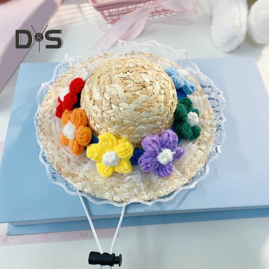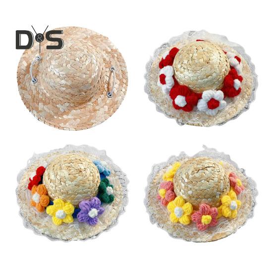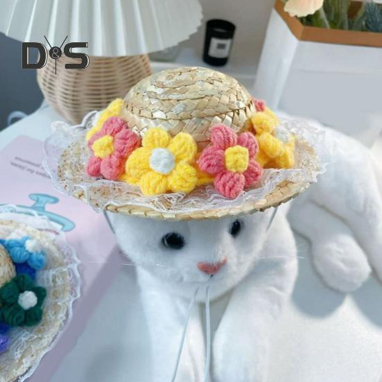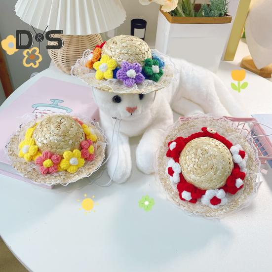 Соломенная шляпа-сомбреро для домашних животных, солнцезащитная шляпа для маленьких собак с цветком, регулируемая кепка-ведро от солнца на Гавайях, летняя пляжная шляпа для маленьких и средних собак и кошек