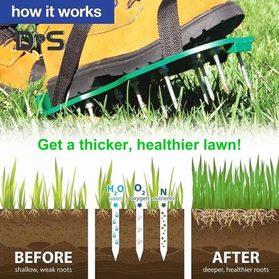 Благодаря новому дизайну с двойными ремнями для большей устойчивости наши вентилируемые туфли обеспечивают надежную посадку во время использования.. Прочная пластиковая основа и 13 прочных металлических гвоздей на каждой сандалии гарантируют долговечность, позволяя эффективно аэрировать почву в вашем саду, делая газоны более зелеными и здоровыми.