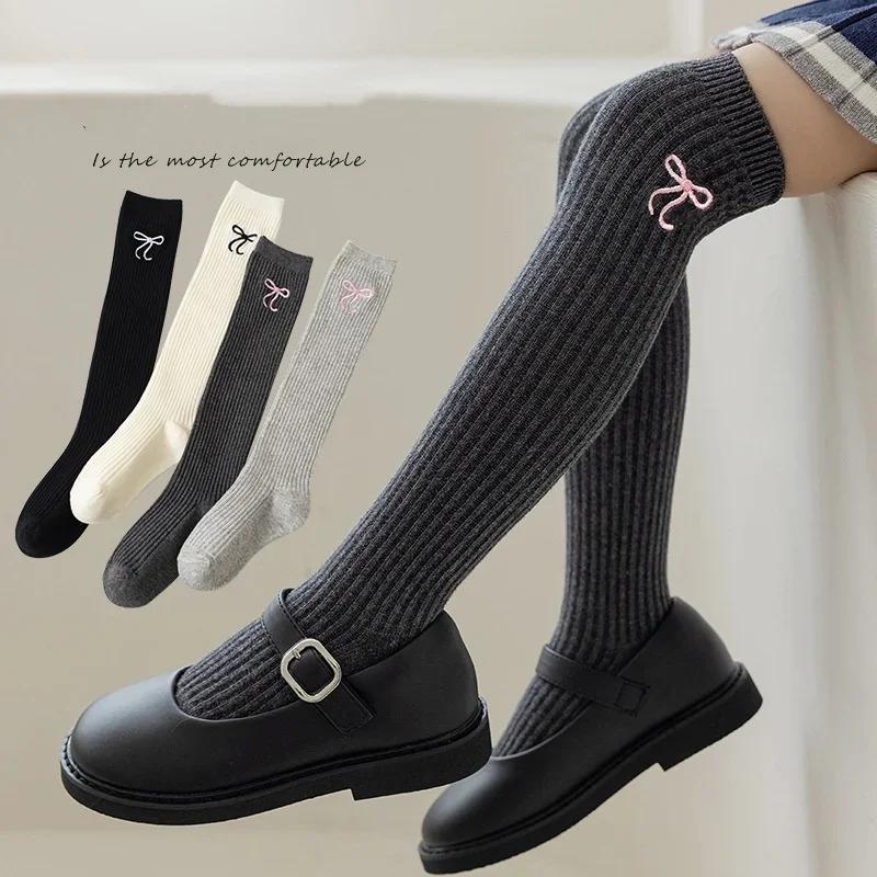 1 пара модных корейских леггинсов-чулок-носков для детей, девочек, JK, Лолиты, с вышивкой, бантом, гольфы до колена, весенне-осенние школьные носки