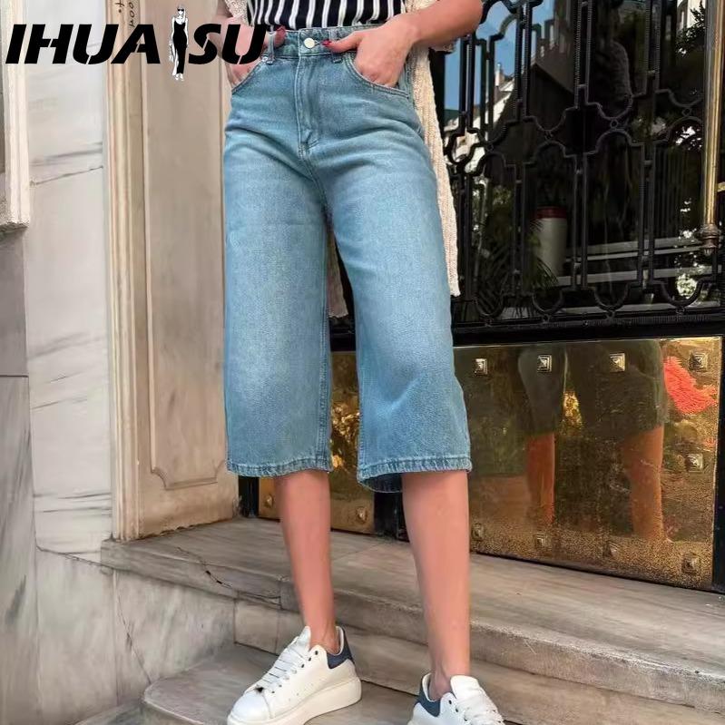 IHUASU Летние городские повседневные повседневные свободные женские джинсовые брюки средней длины