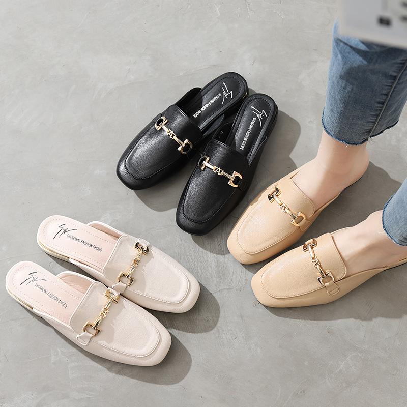 Баотоу полушлепанцы женские летние толстый каблук мюли новая обувь на одной педали ленивая обувь женские тапочки 708-2