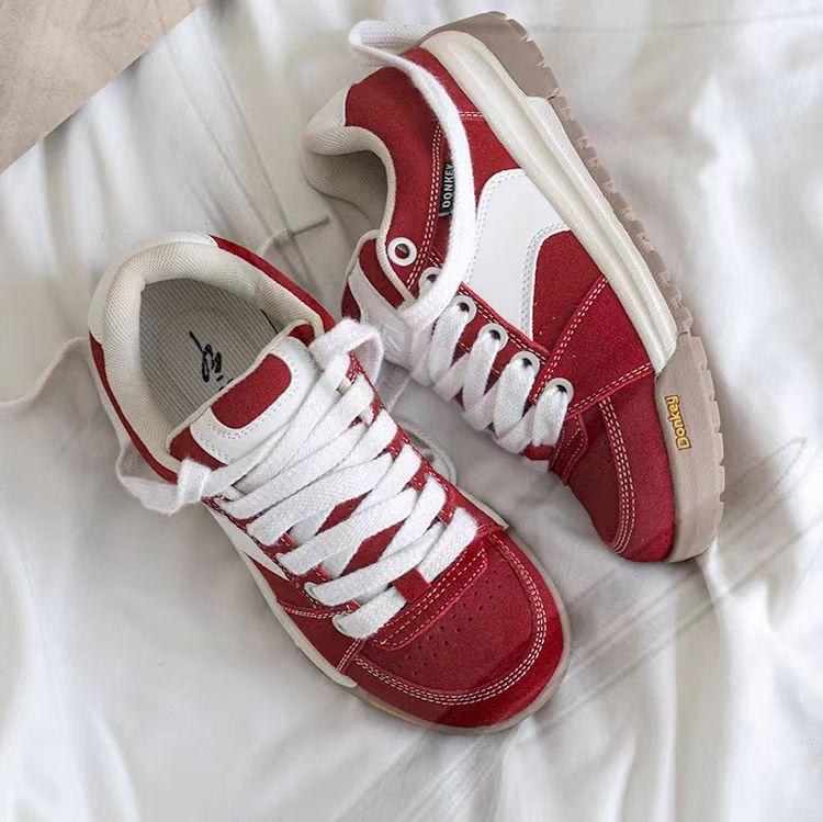 Оригинальные нишевые туфли для досок, женская обувь, осень 2024, новые маленькие красные туфли на платформе, спортивная и любительская обувь