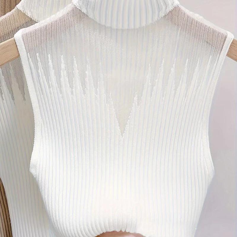 Сетчатый трикотажный топ для женщин Y2K майка с коротким вырезом жилет женский без рукавов свитер шикарный вырез уличный однотонный облегающий топ-труба