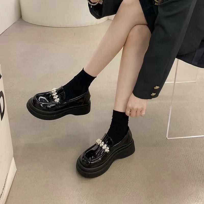 Женские лоферы в британском стиле, на платформе, с жемчужным дизайном, универсальные, с французским круглым носком, нишевые, на год, супермягкие, из маленькой кожи, новые осенне-зимние — купить товар онлайн с бесплатной доставкой до всему миру!