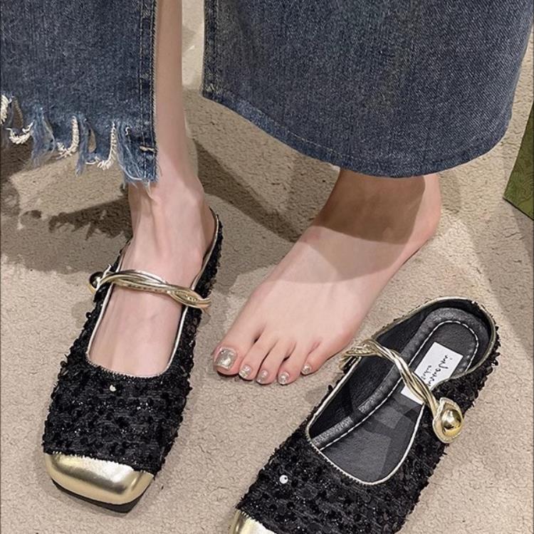 Босоножки на плоской подошве, юбка, классные тапочки, женские, с пайетками, каблук, сумка, голова, полутапочки Мэри Джейн, низкие, новый стиль с модой