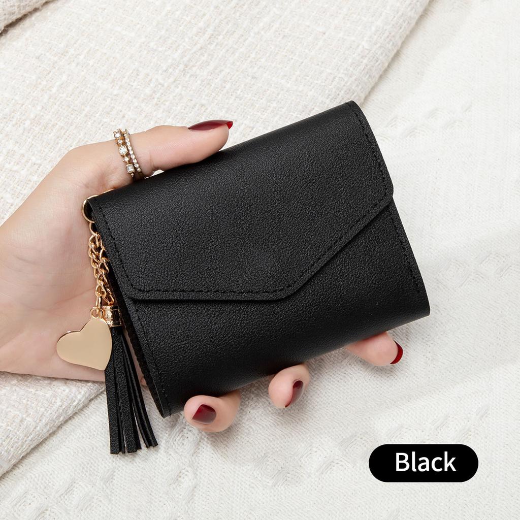 Модный ультратонкий тройной кошелек для монет, минималистичный держатель кредитных карт, однотонный кулон с кисточкой, короткий женский кошелек