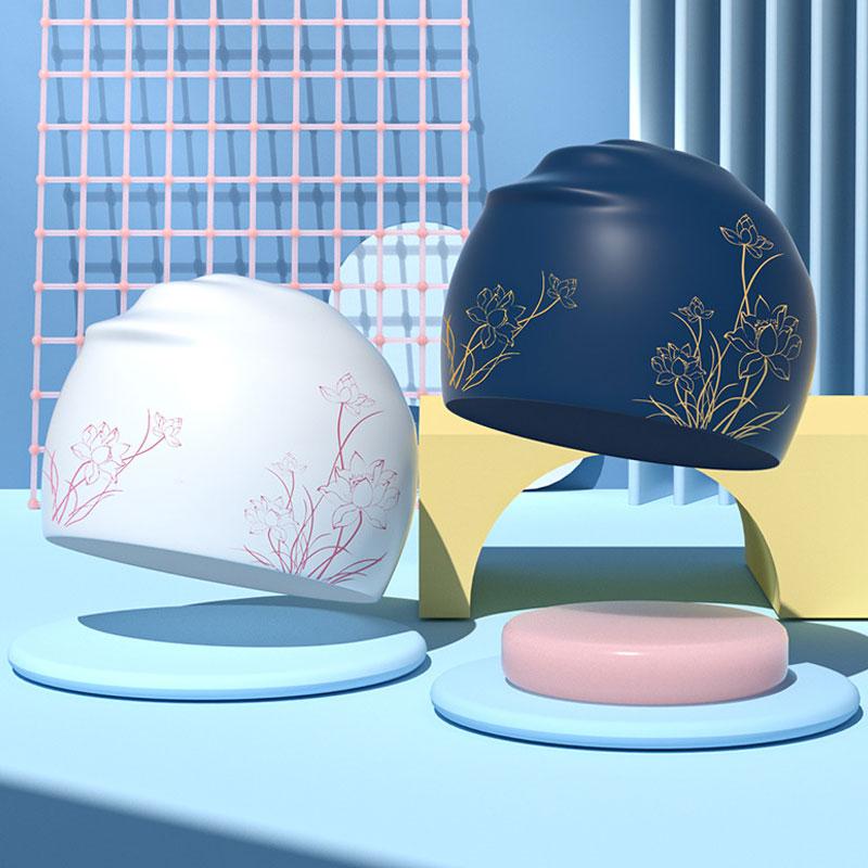 Шапочка для плавания силиконовая шапочка для плавания для женщин и девочек милые шапочки для плавания аксессуары для длинных волос с цветочным принтом