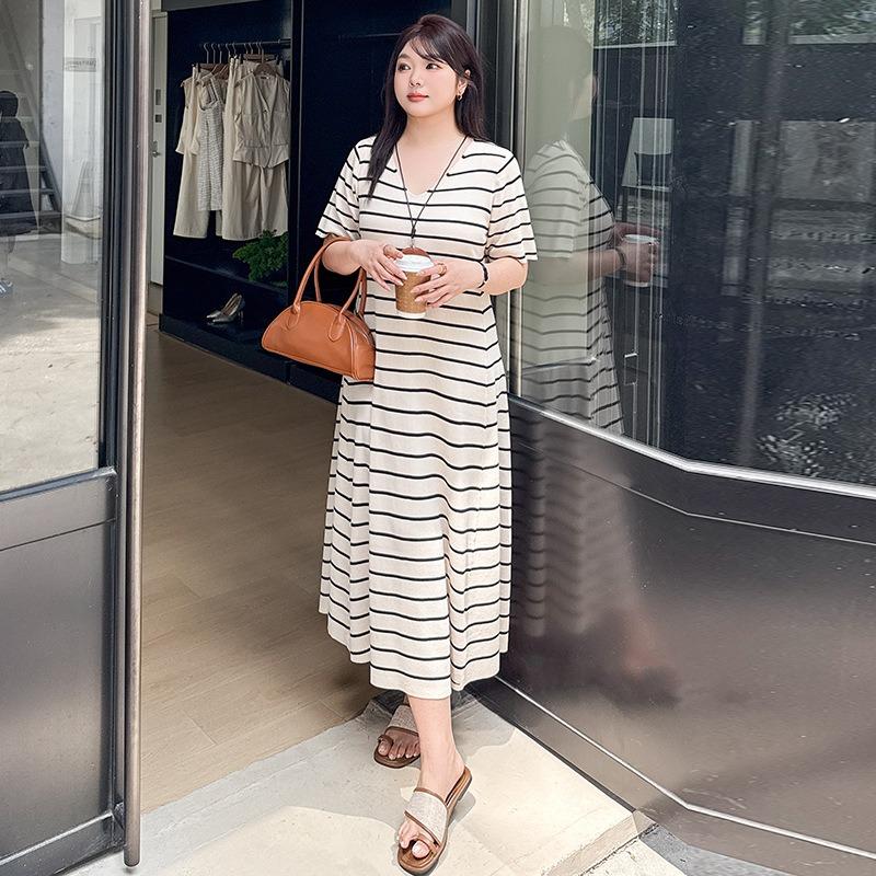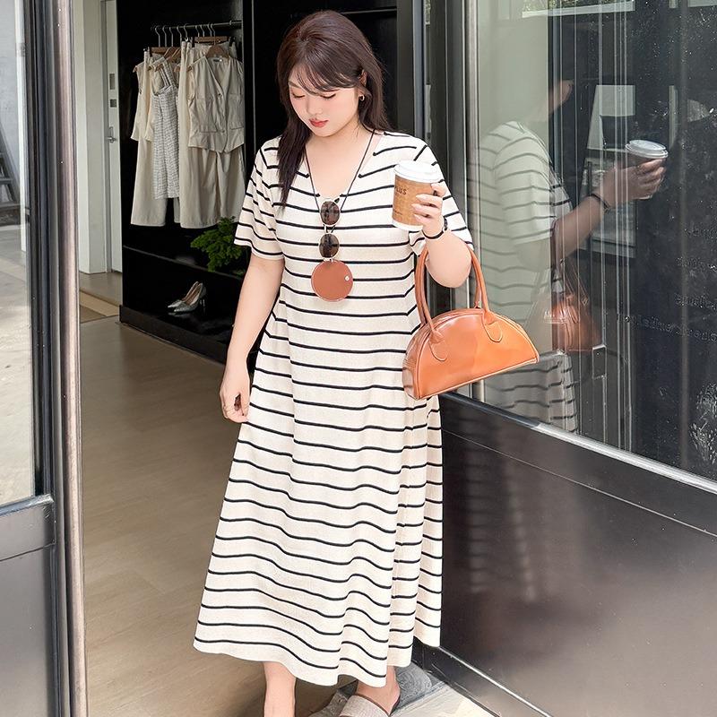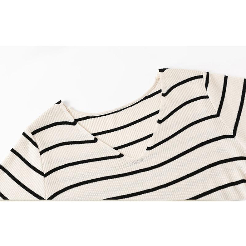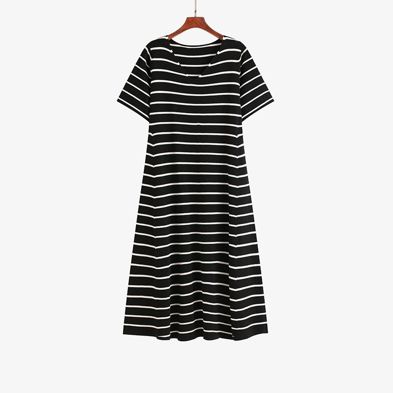 Женское утягивающее платье-футболка в полоску, летнее свободное прямое трикотажное платье
