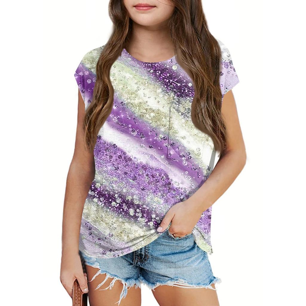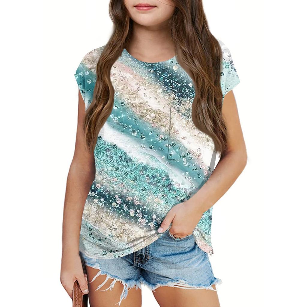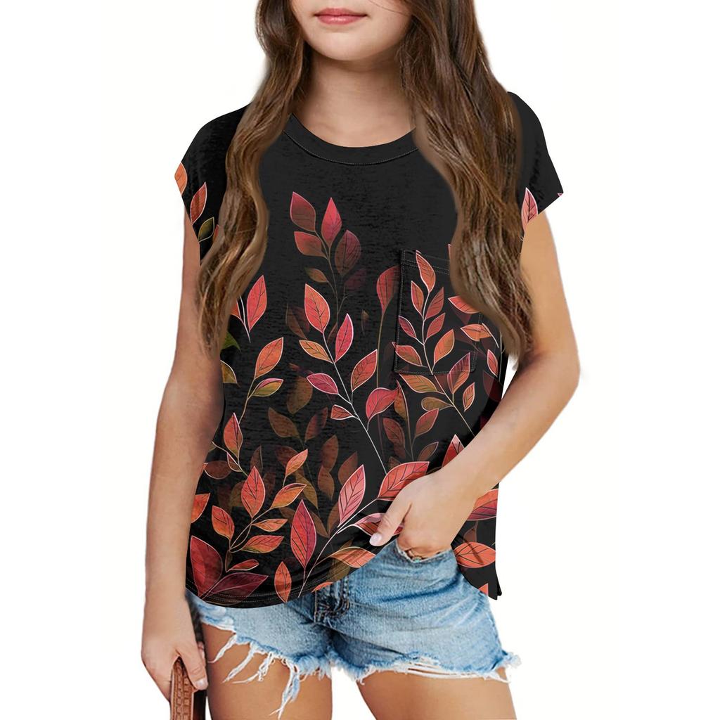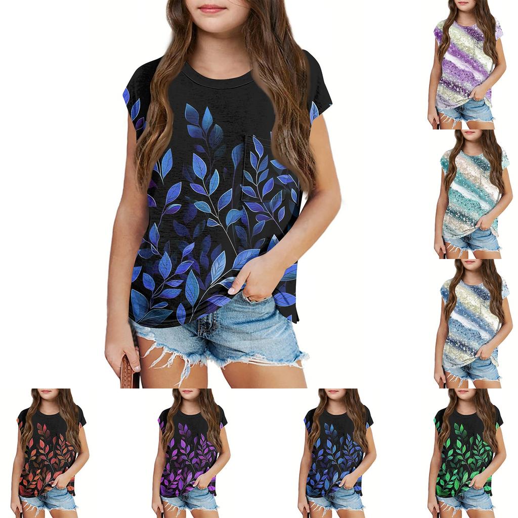 Летний топ с круглым вырезом и 3D-цветочным принтом, модные повседневные футболки с короткими рукавами для девочек