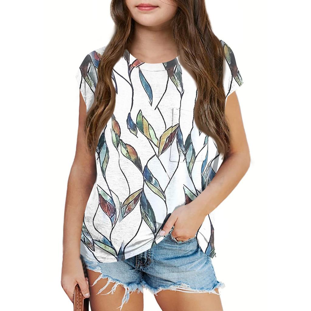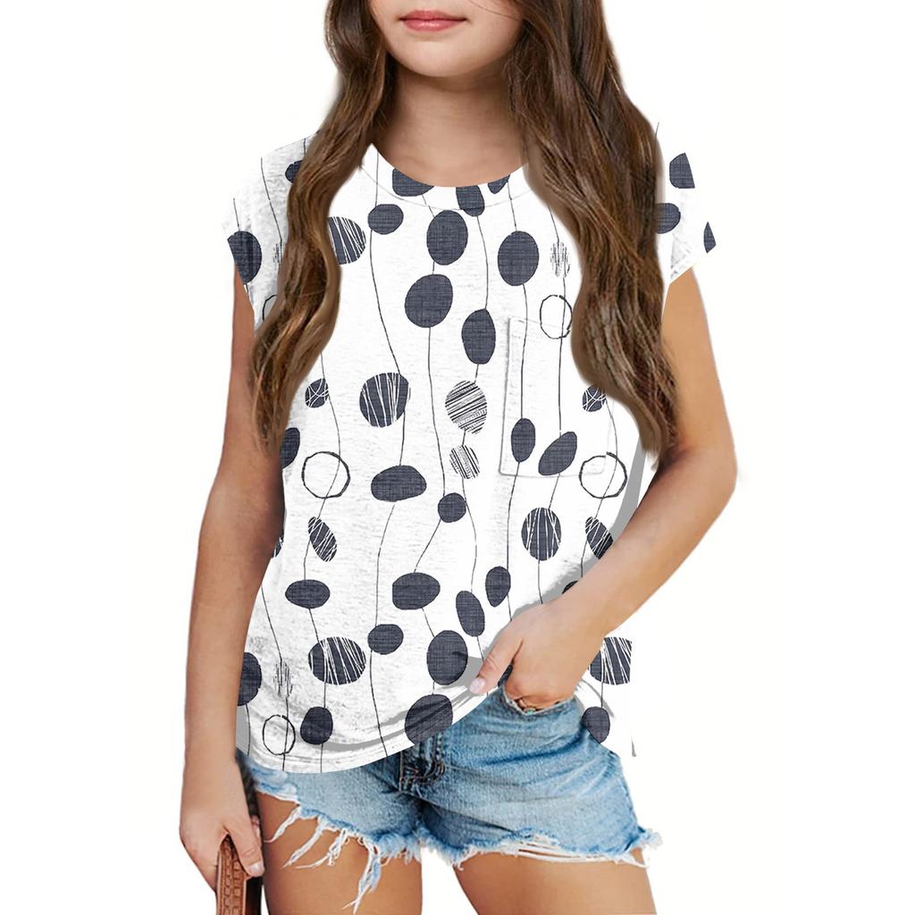 Летний круглый вырез 3D принтованный топ модные повседневные детские футболки с короткими рукавами для девочек