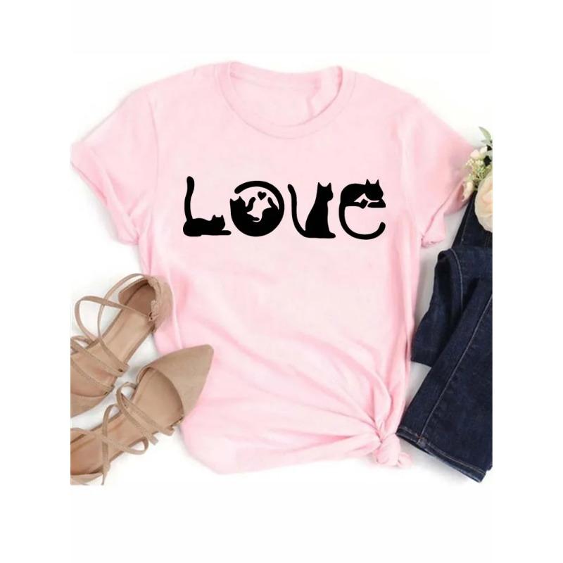 Новая симпатичная женская футболка с принтом Love Heart Cat 3D, повседневная летняя женская одежда, футболки с рисунками