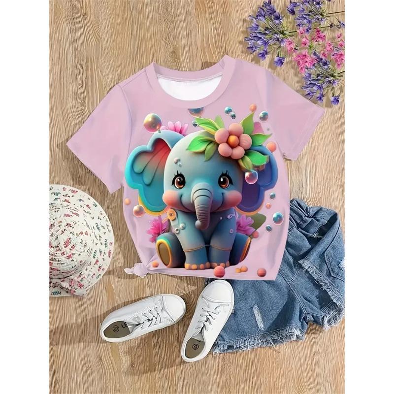 Одежда для девочек Милые животные Слон и олень 3D принт Модные повседневные футболки Забавные футболки для девочек