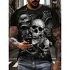 Новая мужская футболка с принтом ужасного черепа 3D в стиле ретро с круглым вырезом и короткими рукавами