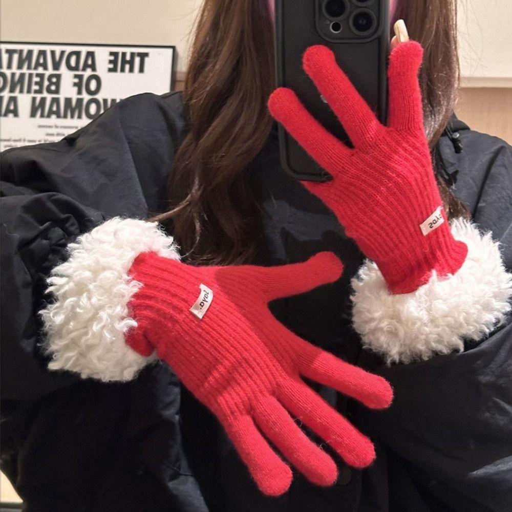 Плюшевые края Термотрикотажные перчатки Трикотажные перчатки с сенсорным экраном Осенне-зимние теплые перчатки