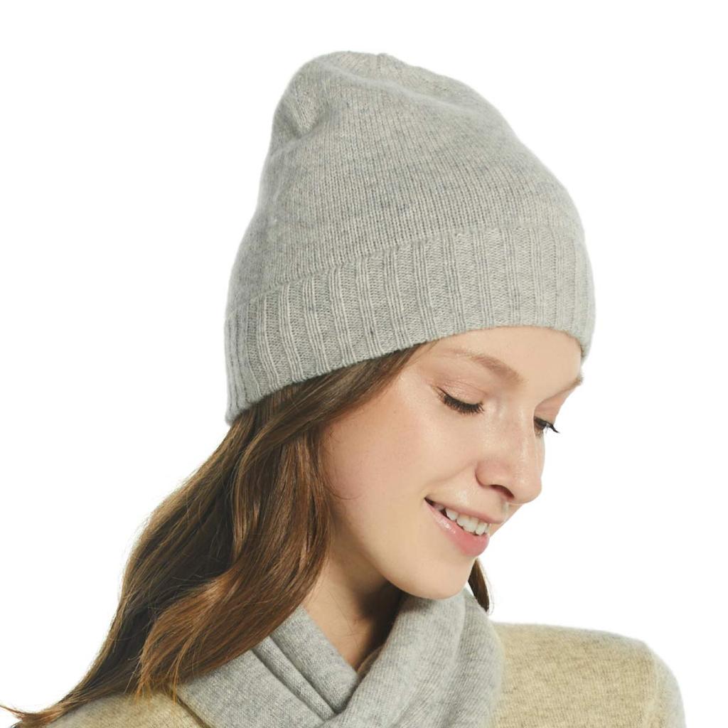 Вязаная шапка, шапка, вязаная кашемировая, защита от холода, однотонная, простая, на день, белый день, подарок [EURKEA] женская, 100% ко дню святого Валентина KASHIMIA20-H (Светло-серый)