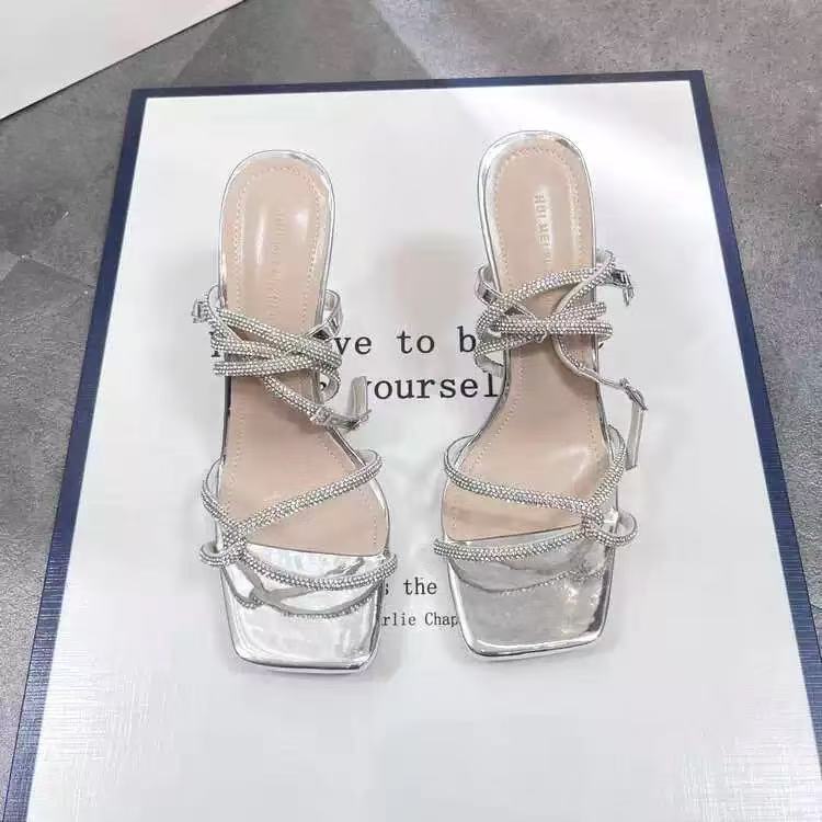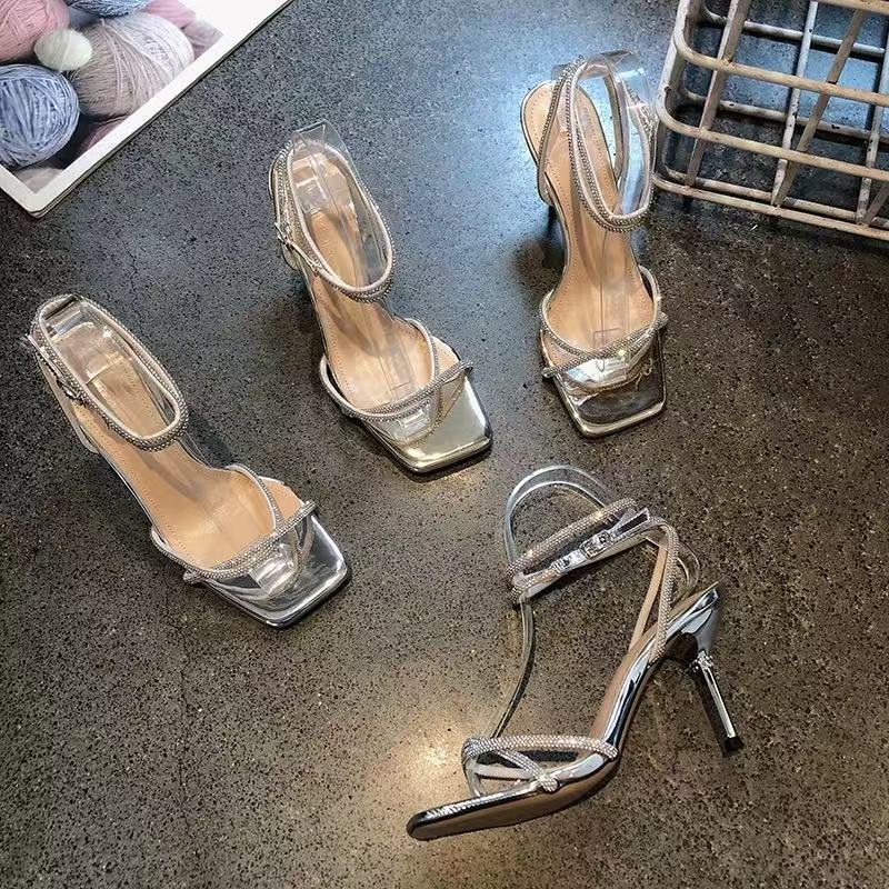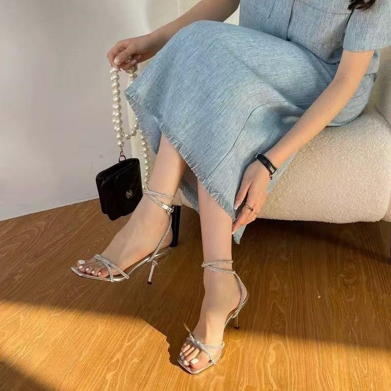 Niche открытый носок с юбкой фея высокие каблуки 2025 новые летние туфли на шпильке интернет знаменитости стразы сандалии женские с перекрестными ремешками