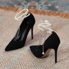 2025 весна новые туфли-лодочки с жемчугом женские французские корейские туфли на тонком каблуке элегантные ноги голые бисерные нежные темпераментные высокие каблуки