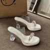 Rhinestone transparent crystal high-heeled sandals with 2025 new thick heel casual fashion versatile slippers