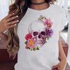 Maycaur Fashion Skull Flower Print Женская футболка Летняя повседневная женская футболка с коротким рукавом и круглым вырезом в стиле 90-х годов, женская футболка, топы