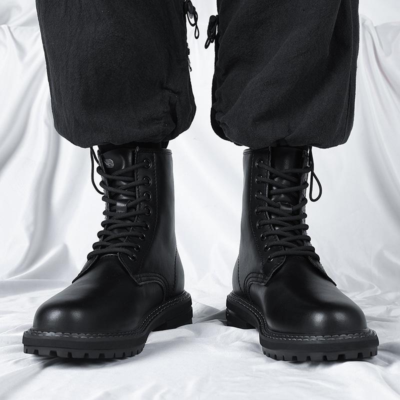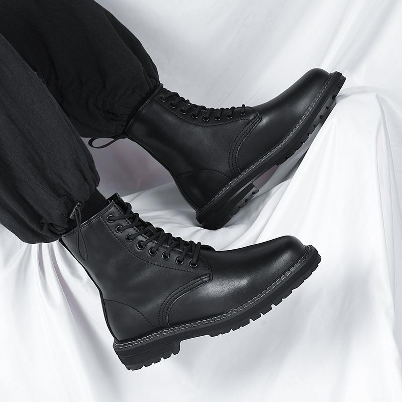 [Customized] New Martin boots men's Korean version high-top men's boots velvet British style leather medium-top boots 6028-T