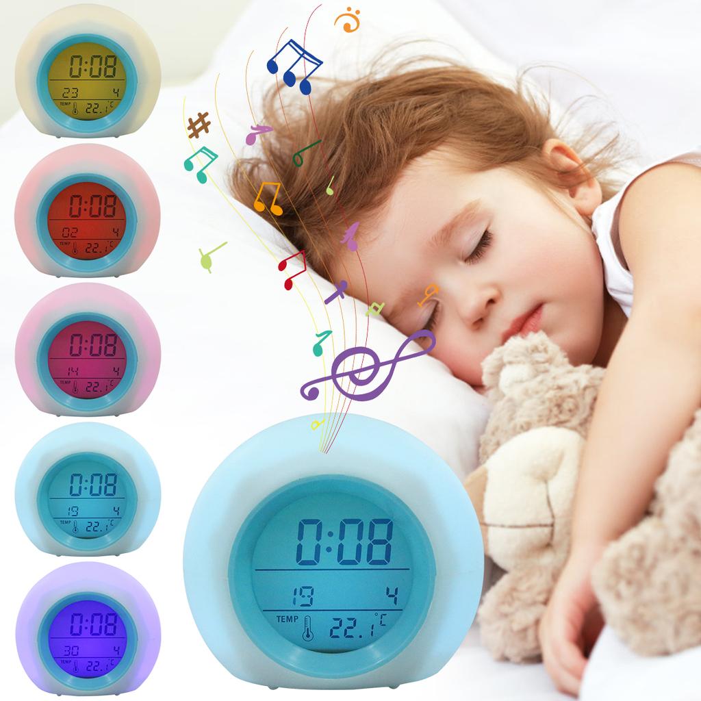 【7-цветный ночник】Этот цифровой будильник имеет 7 цветов подсветки и поддерживает автоматическое переключение 7 цветов, таких как желтый, красный, фиолетовый, синий, индиго, зеленый и голубой.. Мягкий свет создает фантастическую атмосферу в качестве лампы ночью.