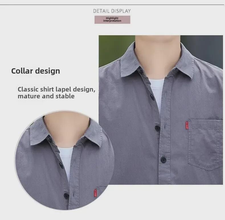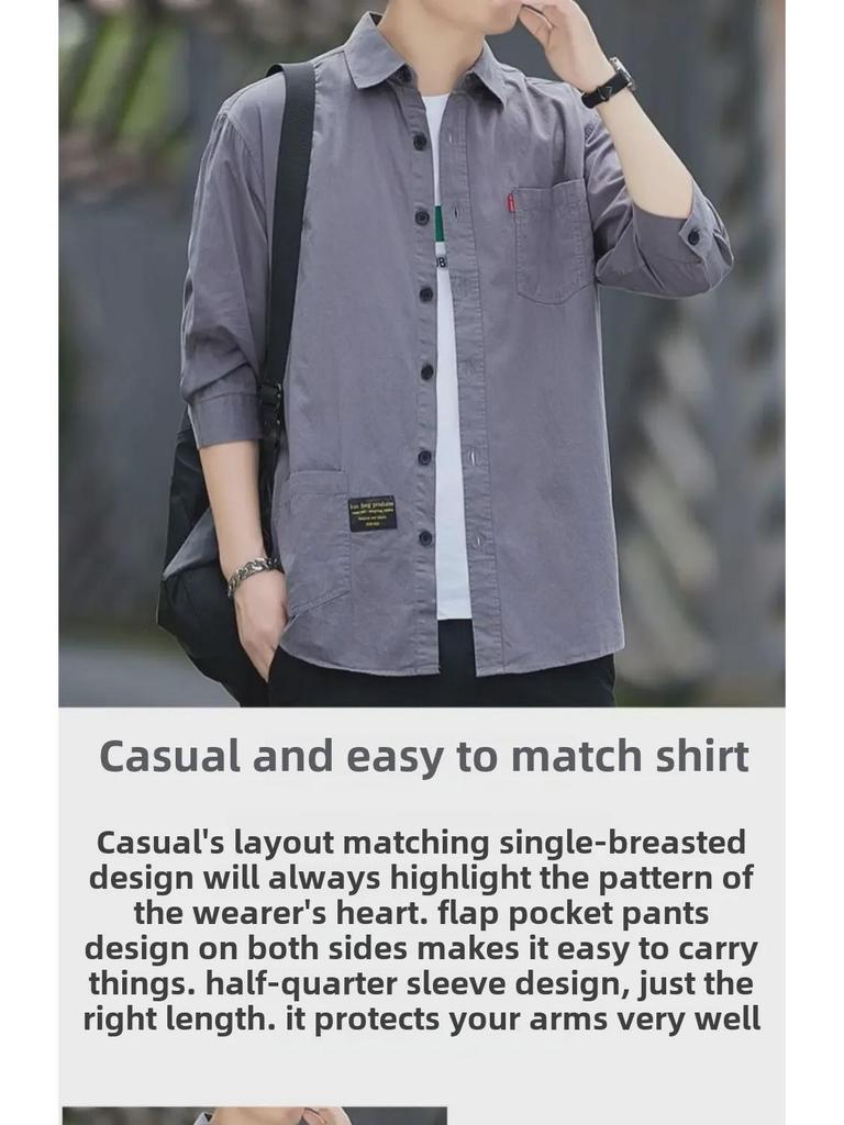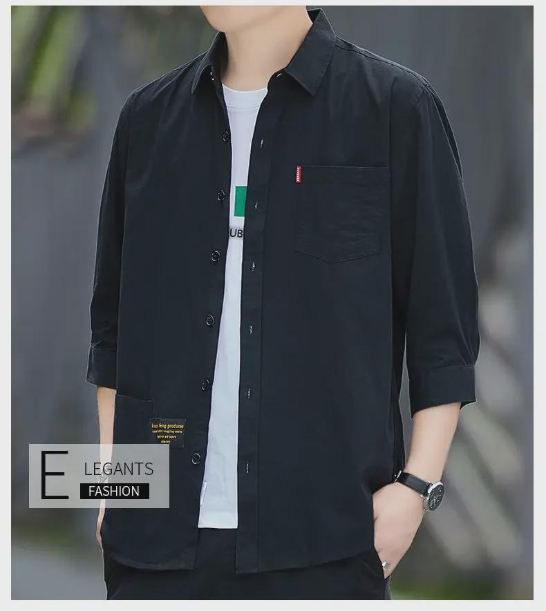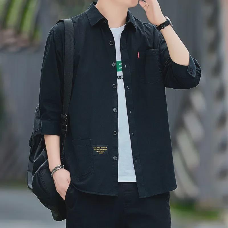 Мужская повседневная свободная рубашка из хлопка с рукавом три четверти в гонконгском стиле