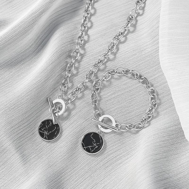 Минималистичные повседневные ожерелья-цепочки на шею для женщин, круглые мраморные подвески в стиле хип-хоп, женские модные ювелирные изделия, ожерелье Naszyjnik