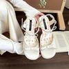 Модные босоножки на высоком каблуке в стиле феи с французским бантом и толстым каблуком, женские, летние новинки 2025 года с юбкой
