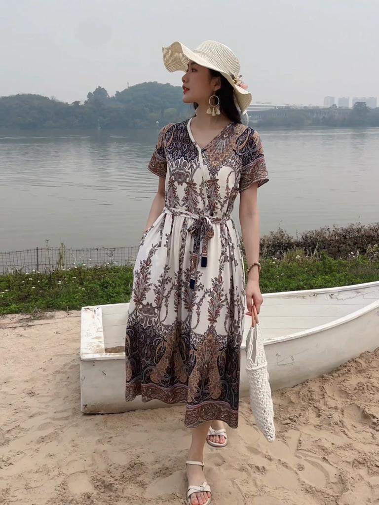 Элегантное женское летнее платье большого размера с коротким рукавом длинное платье женская винтажная одежда